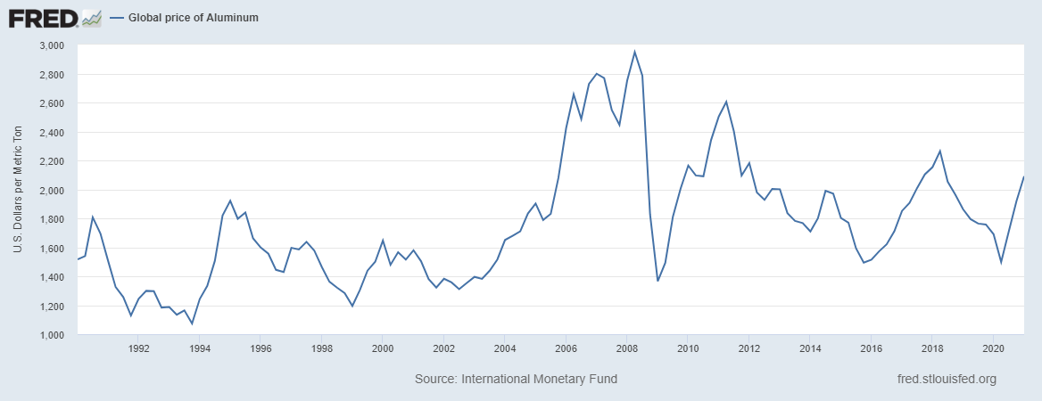 This begs the question as to what, if any, alternatives to copper stranding are available for purchasers of wire and cable? The answer is aluminum. Aluminum is a lower cost alternative to copper, and while the aluminum market has also seen volatility during the last year, it has only increased 24% from the first quarter of 2020 to the first quarter of 2021 and remains much cheaper than copper ($2,091/tonne for aluminum v. $8,477/tonne for copper).